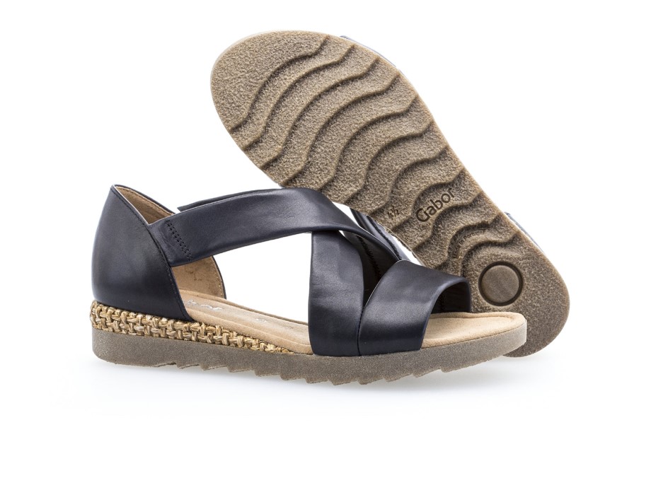 Linda Gabor 82.711 Promessa 85 Sandálias De Couro Meia-noite Com Tiras Cruzadas Para Um Ajuste Seguro. Estas Sandálias Apresentam Uma Parte Superior De Couro Macio Com Reforços Elásticos Discretos Proporcionando Conforto Extra. O Salto De Cunha De 2 Cm Possui Um Painel Tecido Que Contrasta Lindamente Com A Sola Branca. Palmilhas Acolchoadas Mantêm Os Pés Confortáveis em Movimento. Na Gabor Shoes Ireland Achamos Que Essas Sandálias Ficariam ótimas Com Um Vestido Maxi Casual. Material Superior: Couro Material Do Forro: Têxtil Material Da Sola: Palmilhas Artificiais Removíveis: Sem Altura Do Salto: 2cm